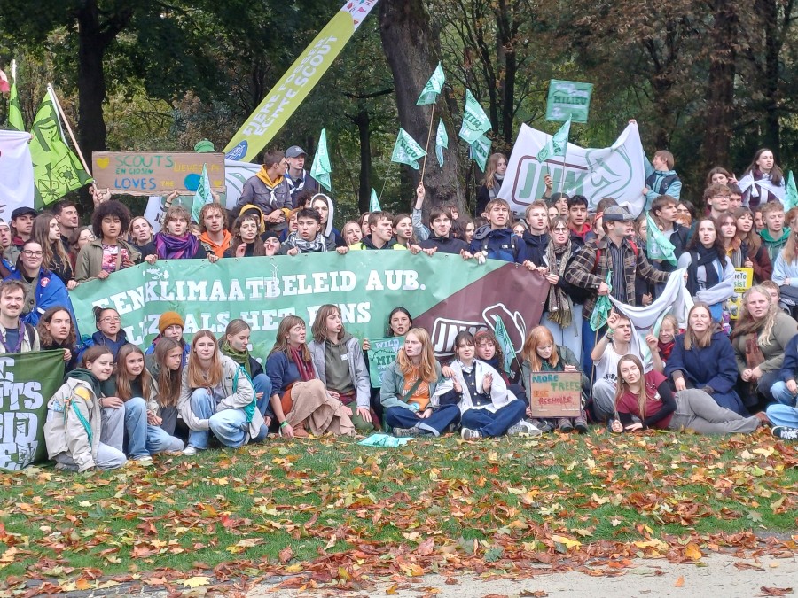 “Hé, dit is weer aardig veel volk”: die gedachte ging me door het hoofd toen ik na het begin van de Klimaatmars van zondag 25 oktober, van bijna achteraan de stoet begon naar voren te trekken om zoveel mogelijk interessante foto’s van de kleurrijke optocht te maken. Het was stevig doorstappen – en steeds weer stoppen en omkeren voor de foto’s – vooraleer ik aan het hoofd van de stoet terecht kwam.